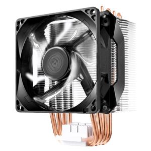 el hyper h411r es un enfriador de aire asequible, compacto y de alto rendimiento que se adapta perfectamente al sistema de factor de forma pequeño. con 4 tubos de calor y tecnología de contacto directo, esto supera a su predecesor hyper 103. el diseño especial de la aleta optimiza el flujo de aire hacia los tubos de calor. su ventilador pwm de 92 mm cuenta con un amplio rango de velocidad del ventilador y puede ajustarse para un flujo de aire máximo y un rendimiento de refrigeración u operación silenciosa.